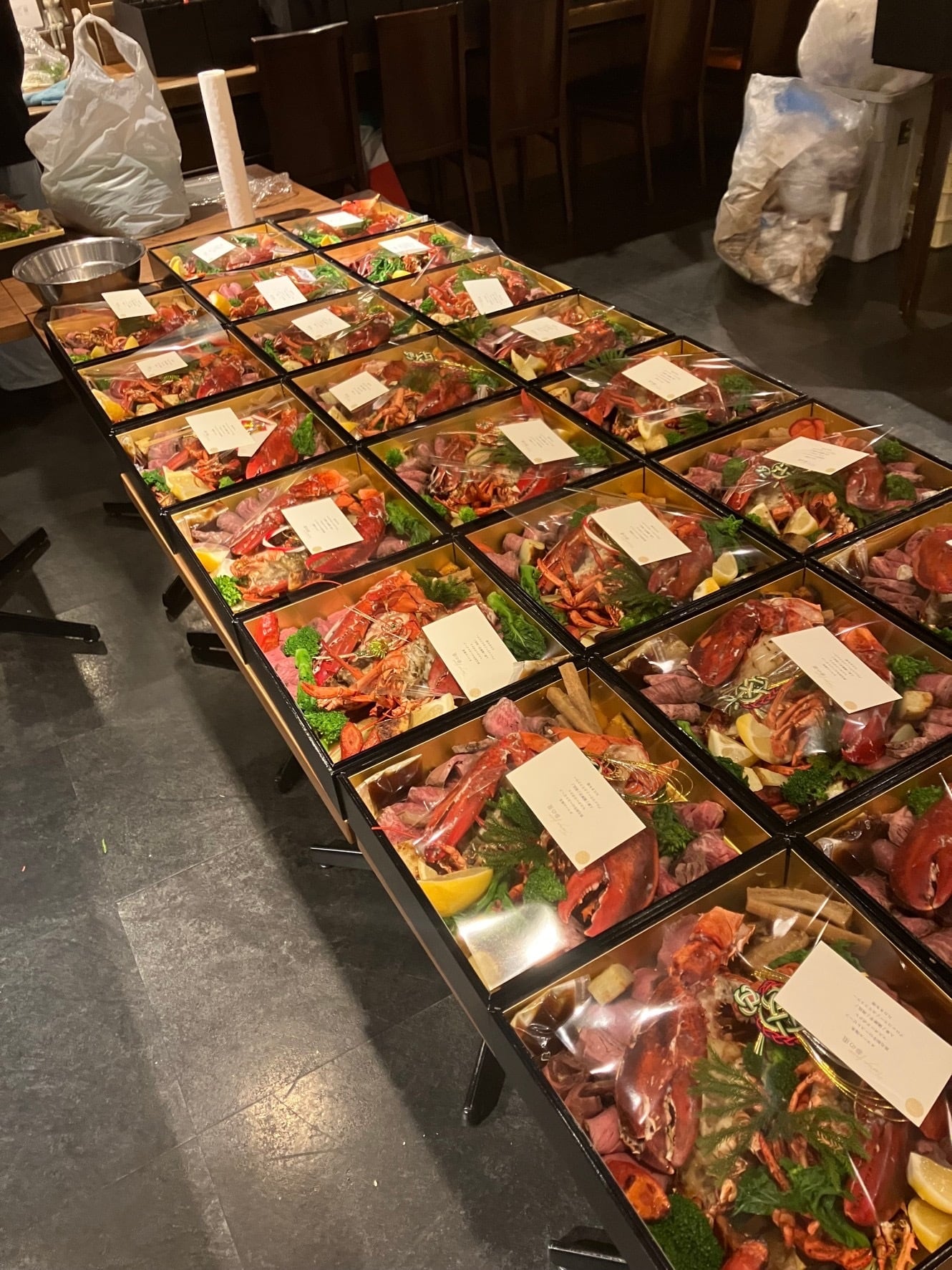 こちらは、12月31日にお届けするイタリアン御節です。全38種類の品々が詰まった、贅沢な内容でお届けします。新年を華やかに彩るお祝いの場にぴったりです。